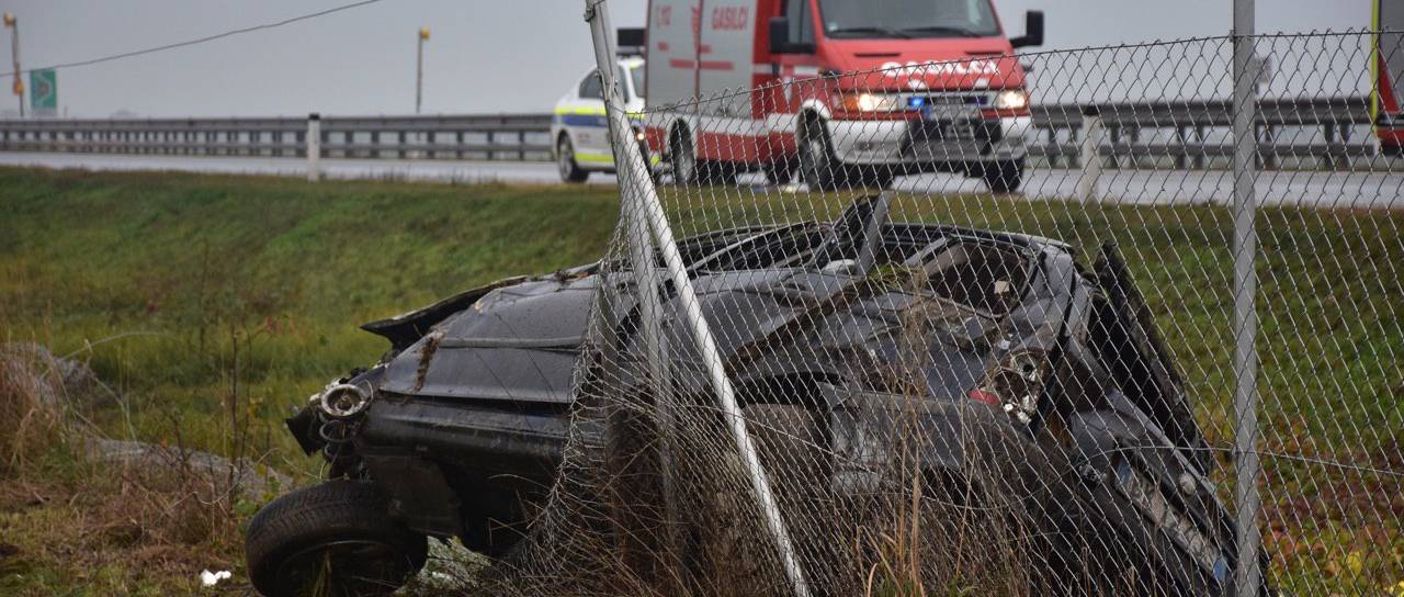 Vozilo je zletelo s ceste in na strehi pristalo v zaščitni ograji. Vzrok za nesrečo naj bi bila neprilagojena hitrost. Kot nam je pojasnila predstavnica soboških policistov Suzana Rauš, so tri osebe bile prepeljane v Splošno bolnišnico Murska Sobota. Stopnja poškodb še ni znana. Gre za tuje državljane.