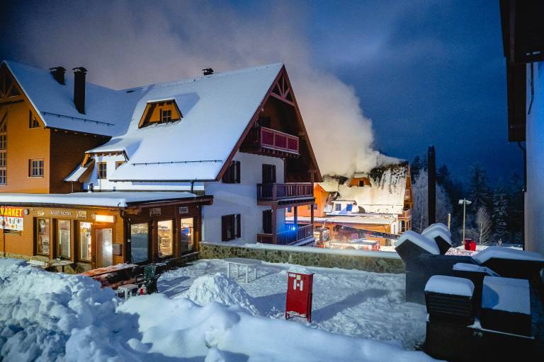 Po tem, ko je zagorelo v enem izmed apartmajev na Mariborskem Pohorju, je gasilcem uspelo omejiti požar in ga že skoraj pogasiti.