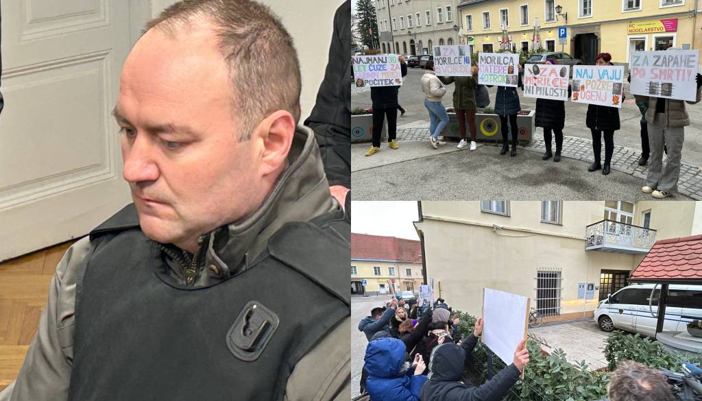 Pred ptujskim sodiščem se zbirajo znanci in prijatelji preminule, s sabo imajo transparente. Na transparentih lahko preberemo napise, kot so: »Za zapahe do smrti« in »Naj vaju ogenj požre«.
