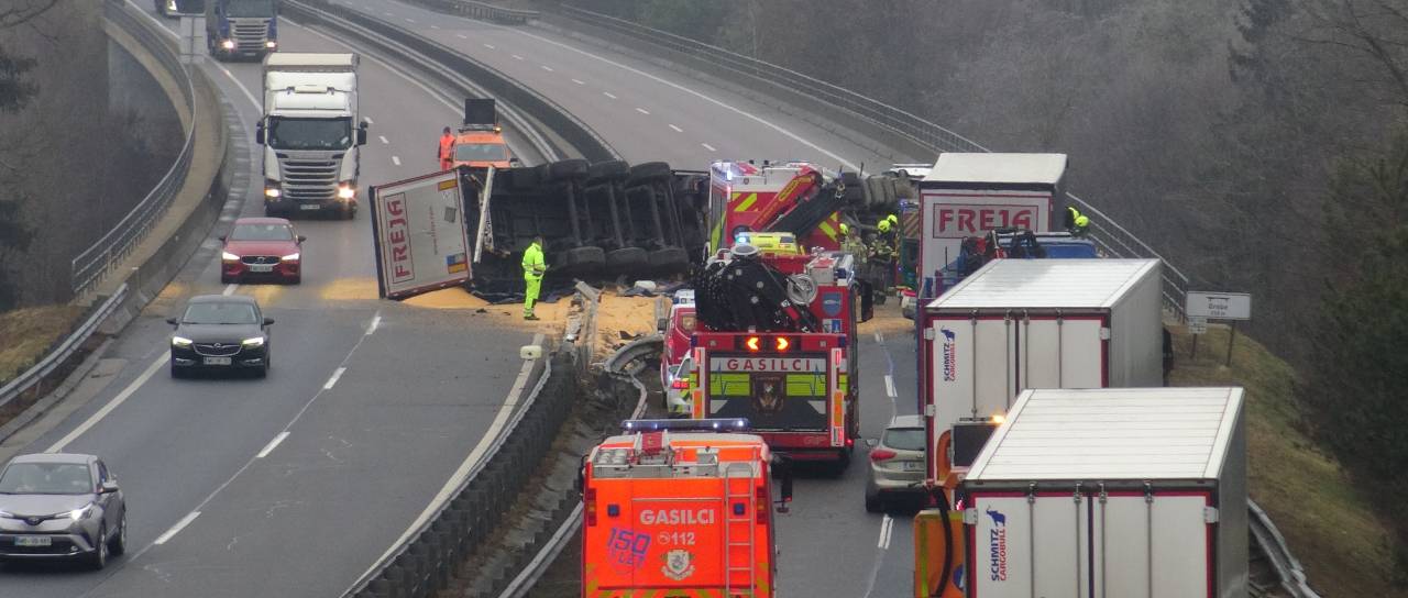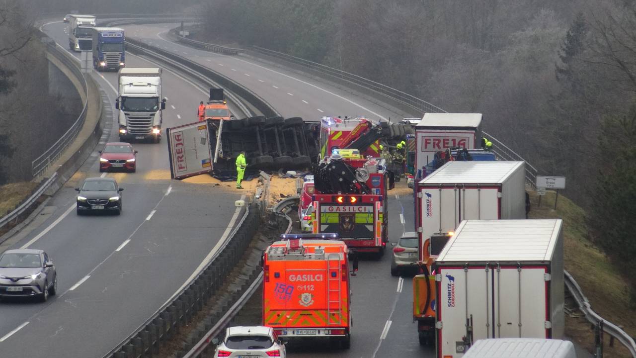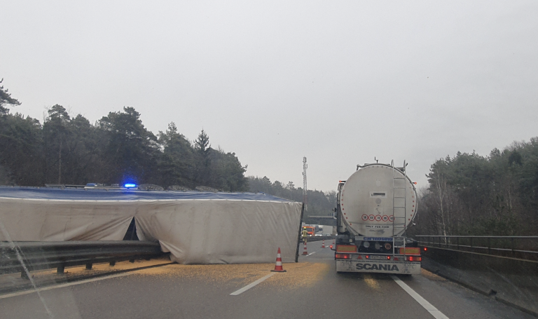 Policijska uprava Murska Sobota je zdaj potrdila, da so bili policisti danes, ob 9.10, obveščeni, da se je na pomurski avtocesti, malo naprej od Vučje vasi v smeri Maribora prevrnilo tovorno vozilo tujih registrskih oznak, ki je prebilo tudi zaščitno ograjo.