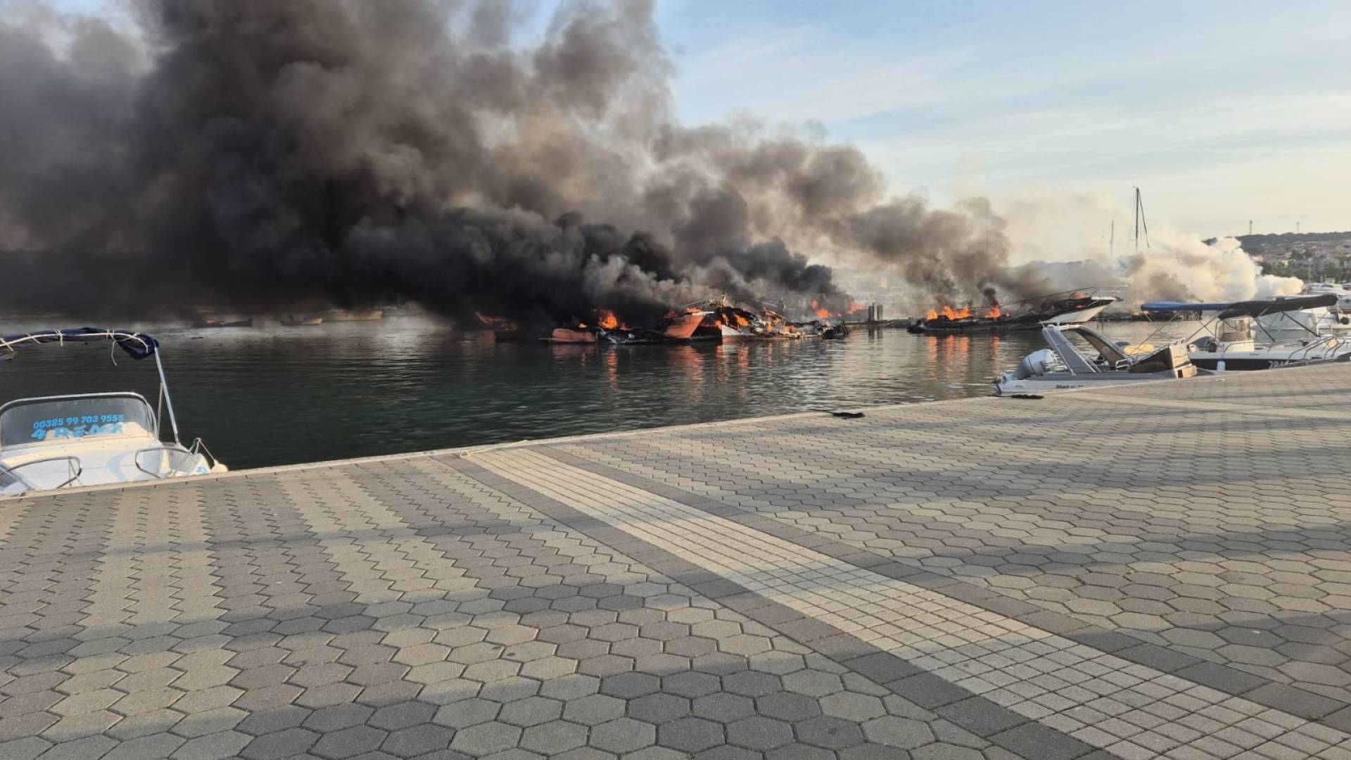 Policija je obvestilo o požaru v marini Medulin prejela nekaj pred četrto uro zjutraj, poroča hrvaška tiskovna agencija Hina.