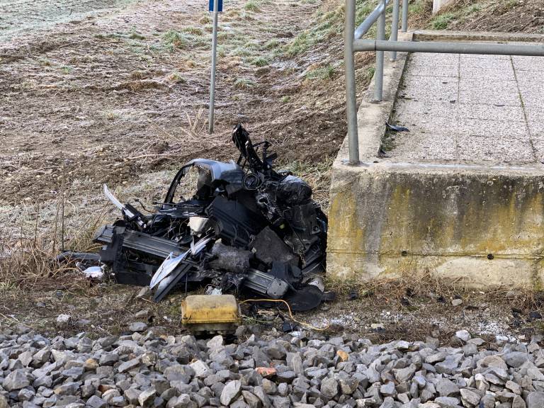 Voznica je kljub zaviranju zaradi spolzkega vozišča s sprednjim delom vozila zapeljala na tirnice, kjer je v vozilo trčil vlak.