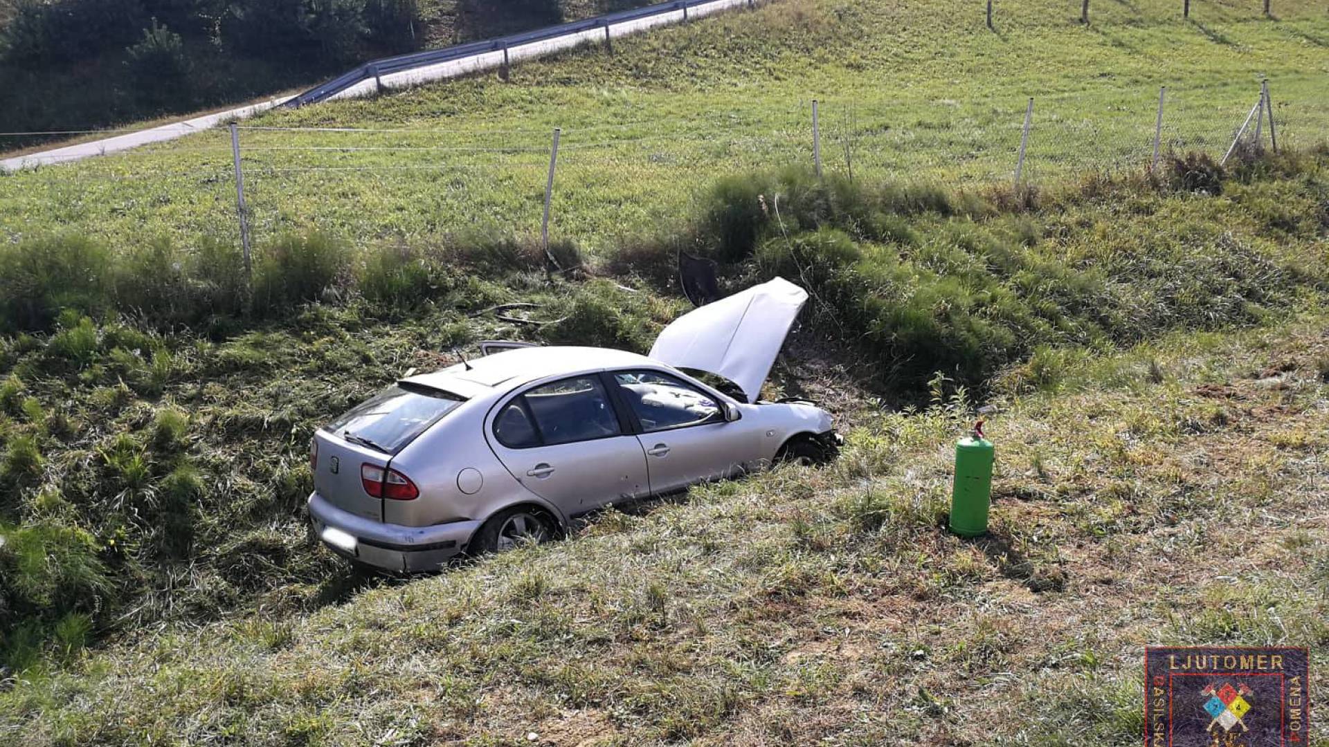 Voznica je zapeljala preko zaščitne ograje in končala v jarku.