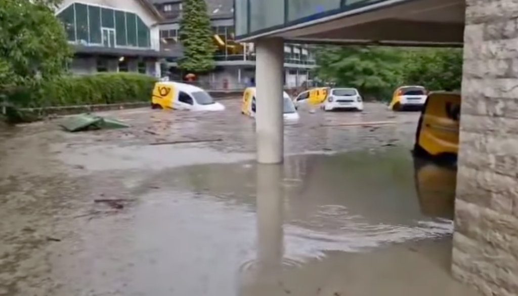 Zaradi poplav so se v četrtek popoldne v Cerknem oglasile sirene za splošno nevarnost, saj je zaradi velike količine padlega dežja voda v središču mesta drla po cestah in s seboj odnašala betonska korita za rože in zabojnike za kosovne odpadke, zalilo je tudi parkirišče pošte in pritlične prostore.