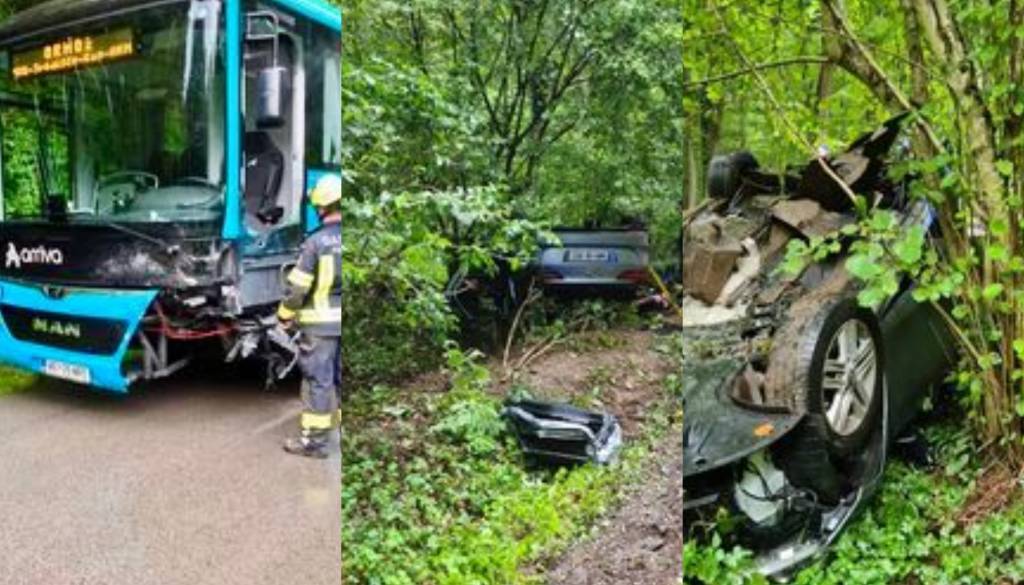 Uprava Republike Slovenije za zaščito in reševanje poroča, da sta včeraj, ob 16.07, na cesti Središče - Godeninci v občini Središče ob Dravi trčila avtobus in osebno vozilo.