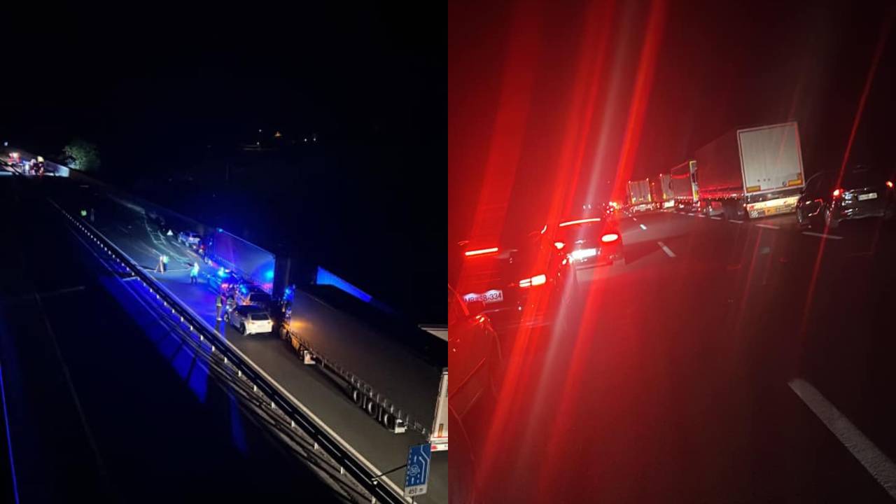 Po poročanju Uprave za zaščito in reševanje Republike Slovenije so ob 23.24 na avtocesti Slovenska Bistrica–Tepanje trčila tri osebna vozila.