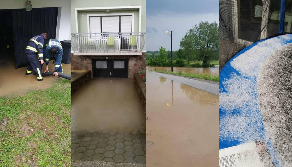 Močna neurja, ki so včeraj zajela Štajersko, so za seboj pustilo številne poplavljene kleti, meteorne vode so zalile ceste, padala je tudi manjša toča.