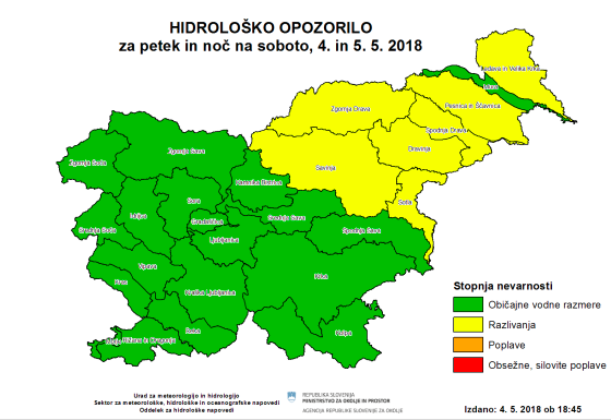 V noči na soboto so možni hitri porasti in razlivanja tudi drugod v vzhodni in severovzhodni Sloveniji. V Pomurju obstaja verjetnost zastajanja zaledne vode.