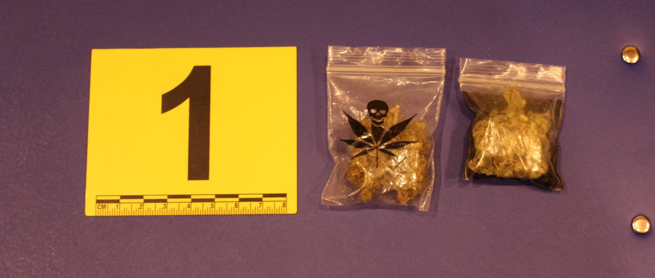 Na podlagi pridobljene odredbe sodišča so policisti še isti dan pri njemu opravili hišno preiskavo, saj so sumili, da poseduje prepovedano drogo. Med hišno preiskavo so našli dve manjši PVC vrečki s posušenimi rastlinskimi delci, za katere sumijo, da so prepovedana droga konoplja, digitalno tehtnico in gumijevko, ki spada med hladna orožja. Vse opisano smo mu zasegli.