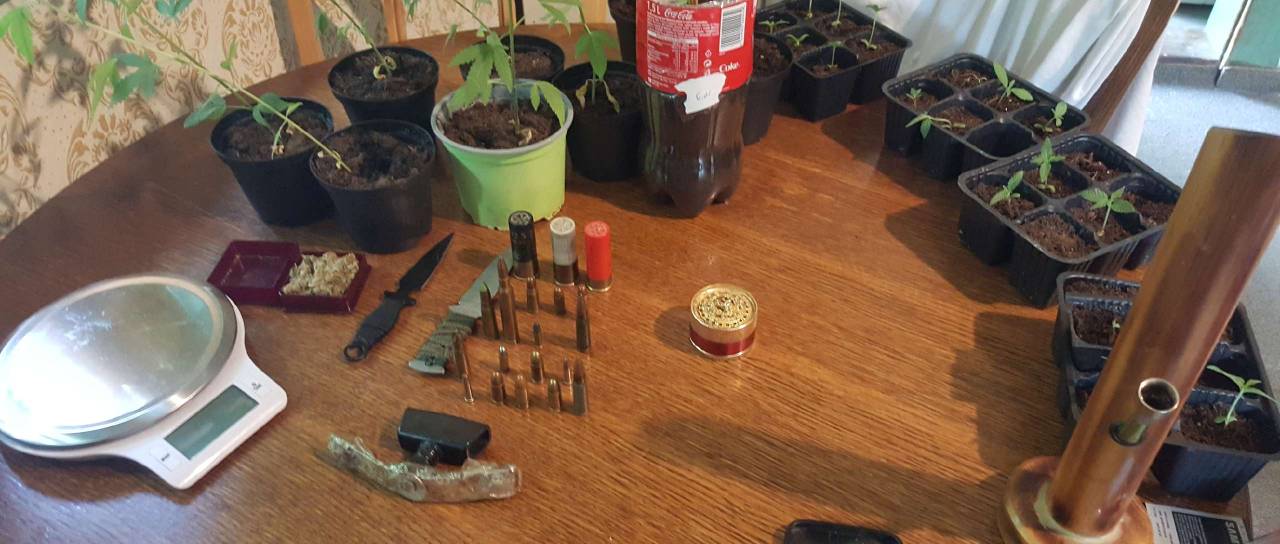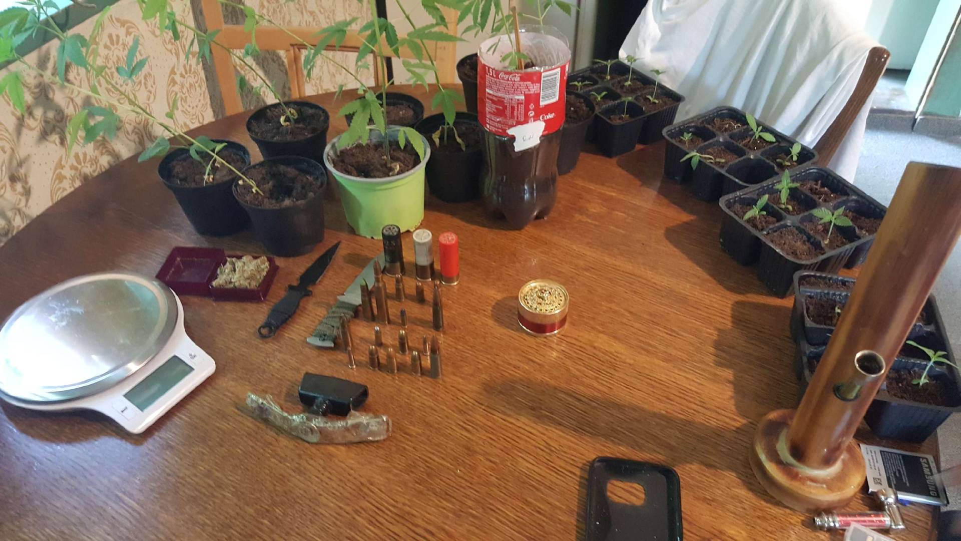 Med drugim so mu po besedah policije zasegli 32 sadik konoplje, od tega 22 sadik velikosti od 30 do 50 centimetrov ter 10 manjših sadik, 20 različnih nabojev za pištolo in puško, doma izdelan bokser, dva noža in elektronske naprave.