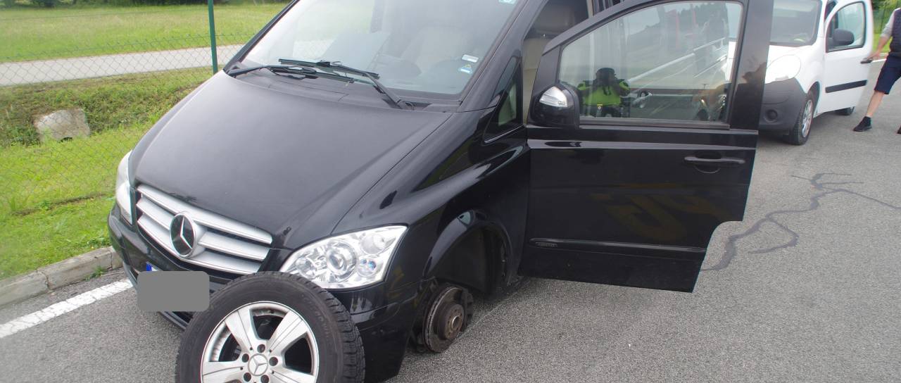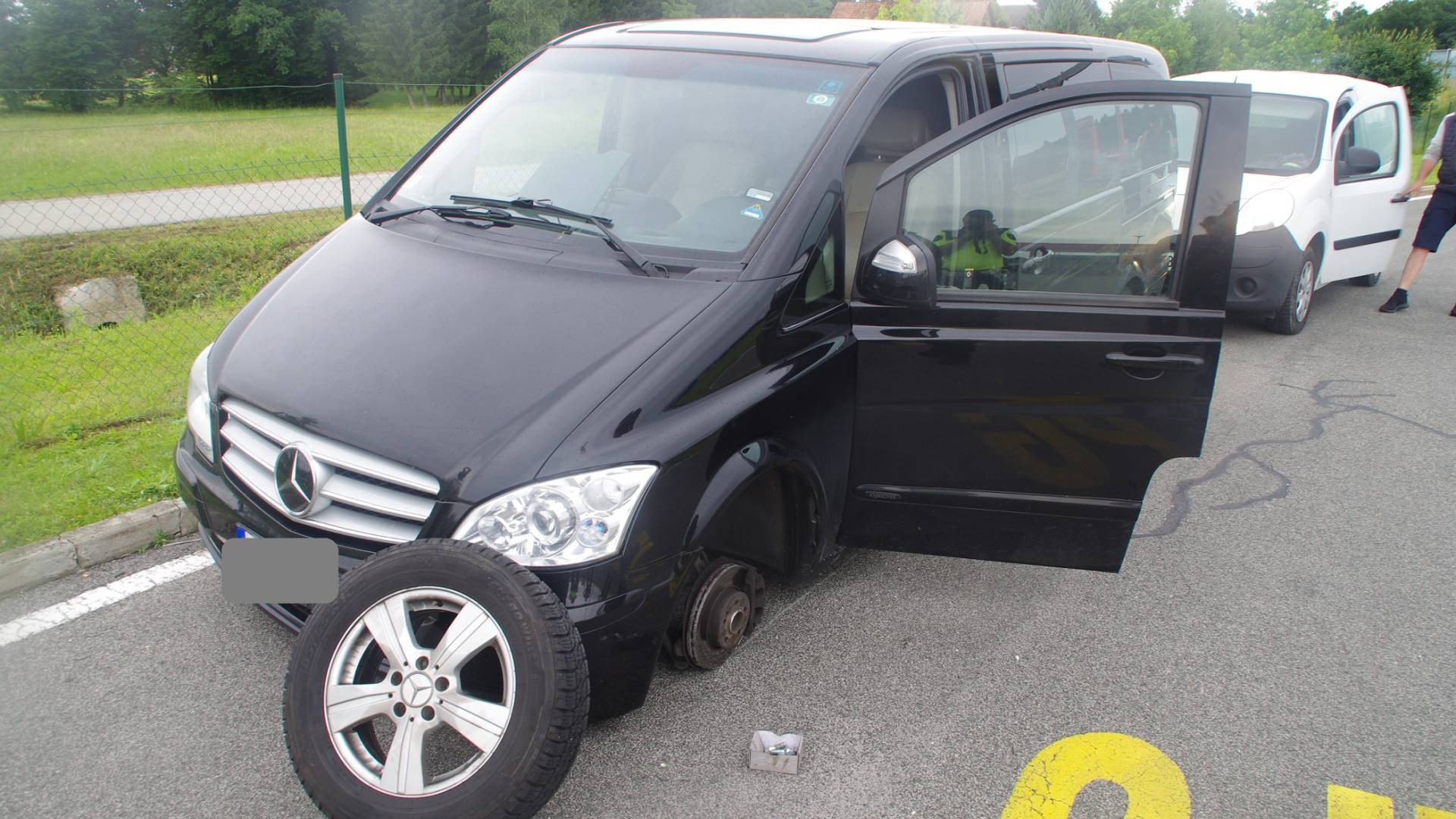 Ko so si policisti pobliže ogledali vozilo so ugotovili, da je iz kombija odpadlo prednje levo kolo.