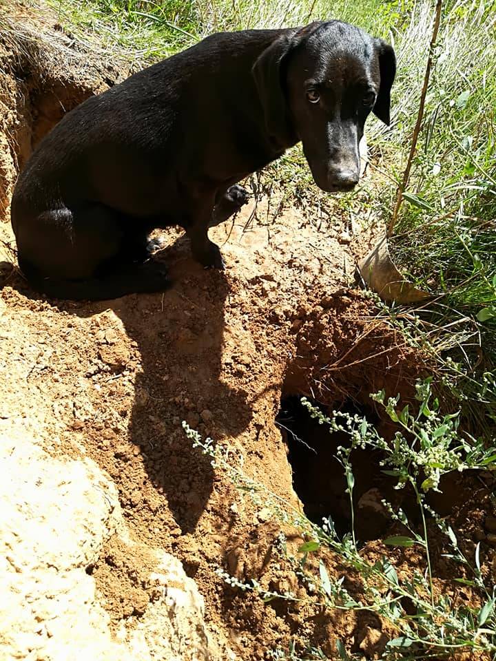 Psički zakopani v rovu pod zemljo