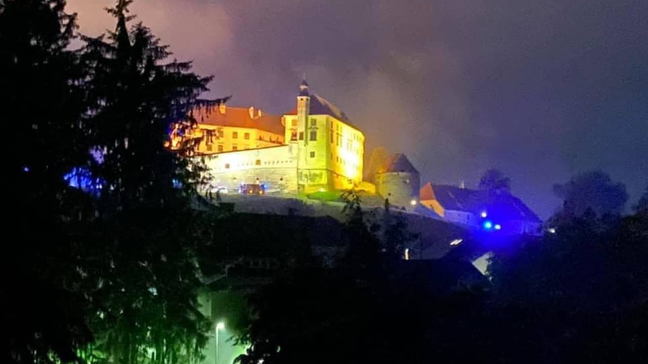Ptujski gasilci so dobili poziv na intervencijo sinoči ob 21.24, ko je bil na strehi gradu opažen dim.