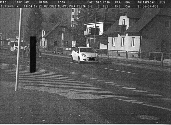 Voznik belega Fiata je na delu Ptujske ceste, kjer je omejitev hitrosti s postavljenim prometnim znakom 70 kilometrov na uro, vozil s hitrostjo 129 kilometrov na uro, kar je za 59 kilometrov na uro več od največje dovoljene hitrosti vožnje.