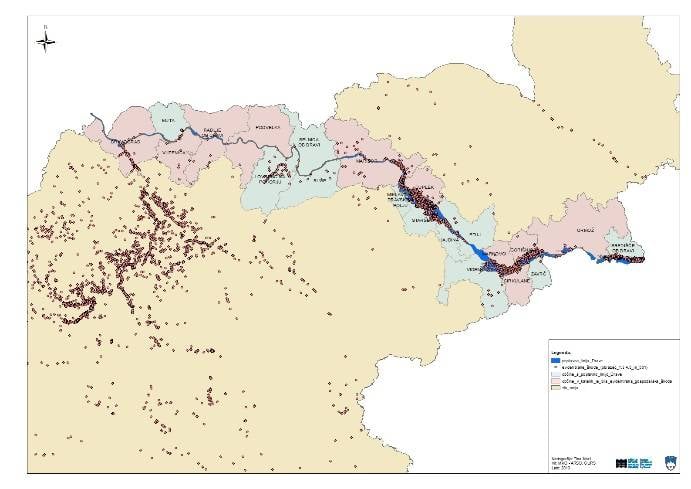 Na zemljevidu so s točkami označeni takratni škodni dogodki.