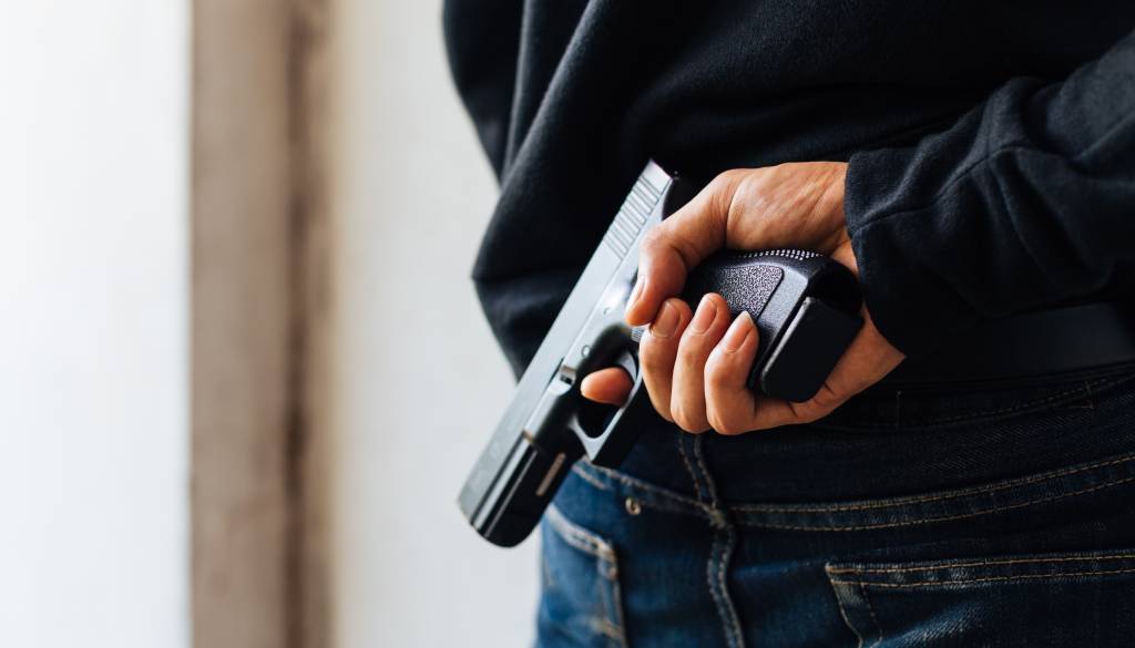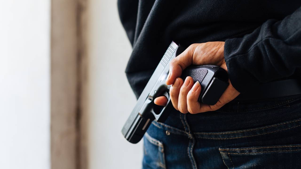 Neznani moški, star okoli 40 let, je s pištolo zagrozil prodajalcu in ga potiskal proti blagajni.