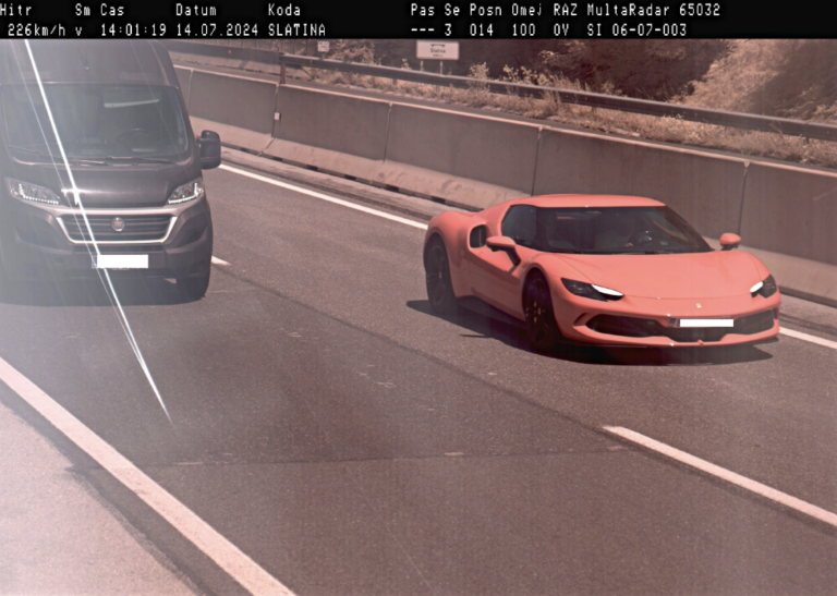 Voznik Ferrarija je na avtocesti, kjer je hitrost vožnje s prometnim znakom omejena na 100 kilometrov na uro, vozil s hitrostjo 226 kilometrov na uro. Kršitelju so poleg globe v višini 1.200 evrov izrekli še devet kazenskih točk.