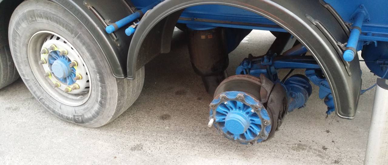 Voznik skupine vozil v sestavi vlečnega in priklopnega vozila nevarno blago prevažal brez enega kolesa na vozilu.