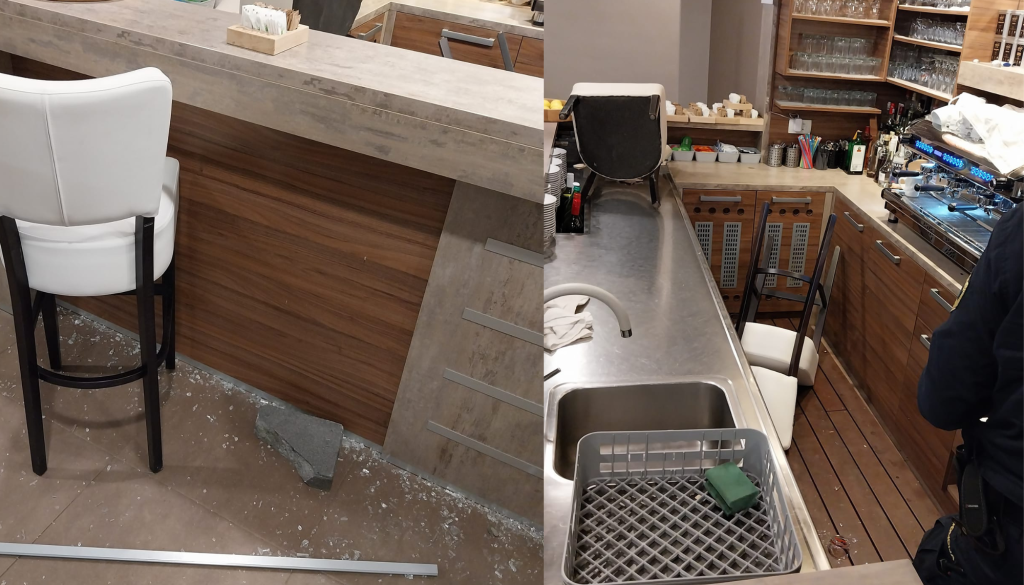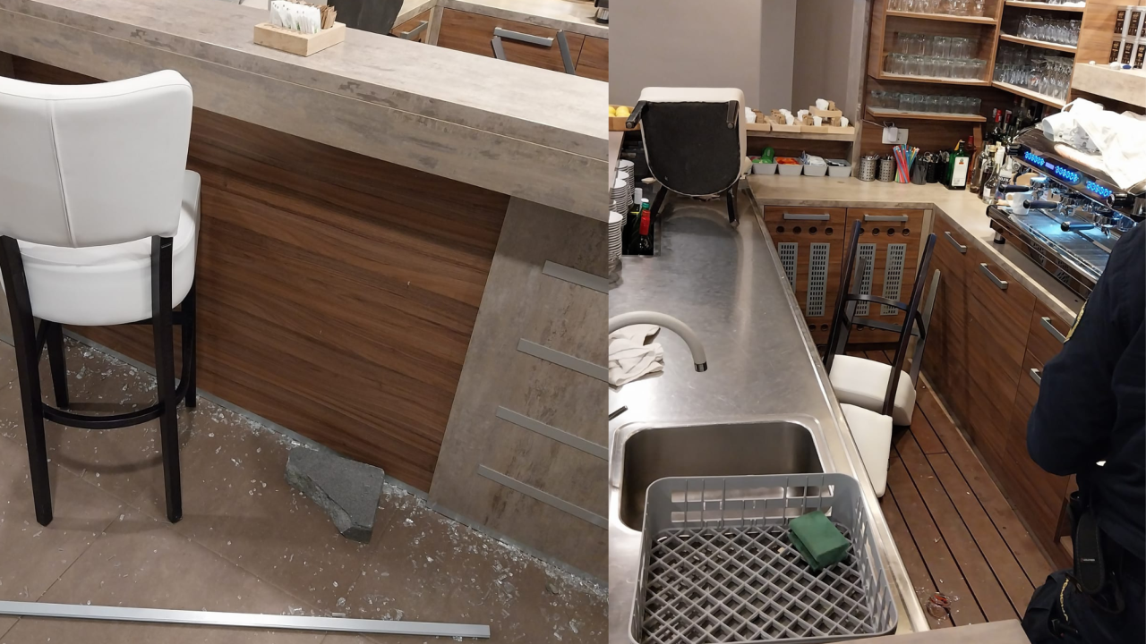 Nepridiprava sta, kot je razvidno iz fotografij, razdejala okolico točilnega pulta, razmetala barske stole in razbila nekaj stekla.