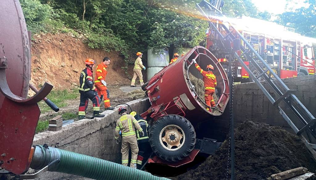 Gasilci Prostovoljnega gasilskega društva Materija so na družbenem omrežju Facebook sporočili, da je včeraj ob gospodarskem poslopju v Mihelah voznik traktorja s silosno prikolico zapeljal čez rob betonskega gnojnika, zaradi česar sta traktor in prikolica zdrsela približno štiri metre v globino.