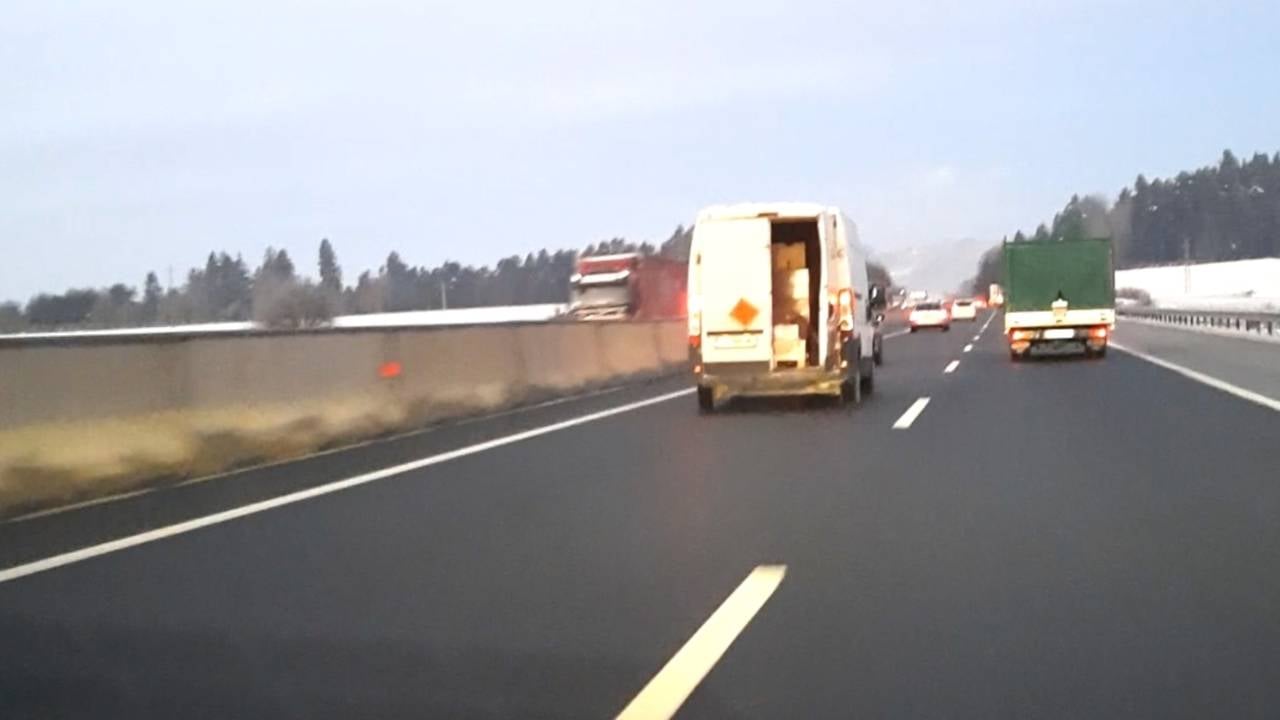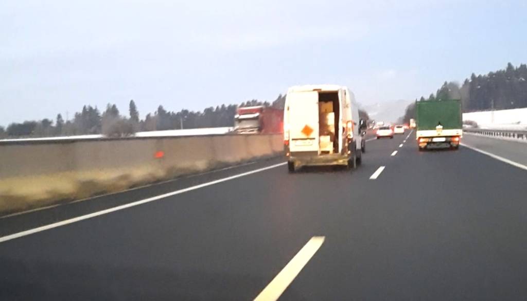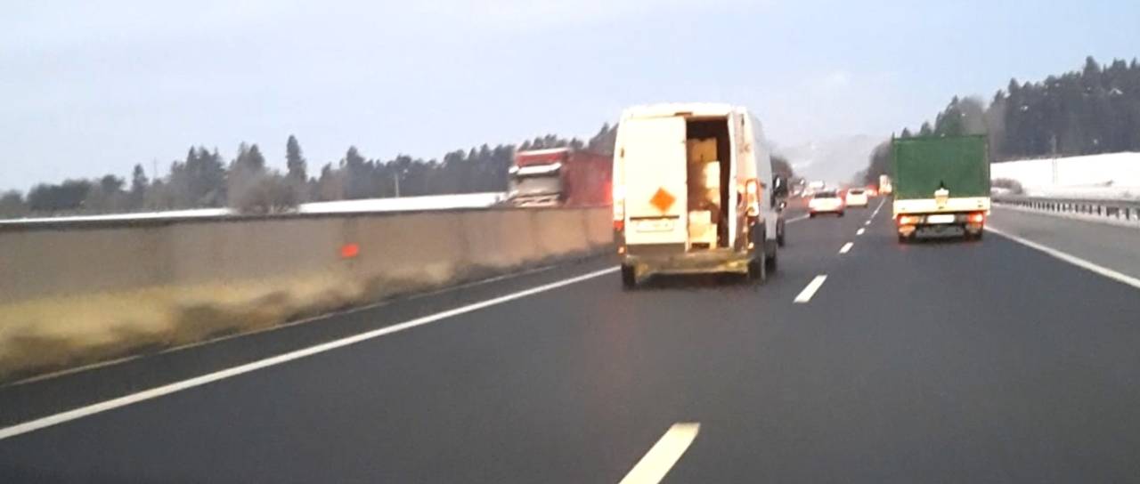 Policisti Postaje prometne policije Celje so včeraj zjutraj, med kontrolo cestnega prometa na avtocesti A1, med vožnjo iz smeri Arje vasi proti Šempetru opazili, da so se vozniku kombiniranega vozila, med vožnjo po prehitevalnem pasu, odprla vrata tovornega prostora.