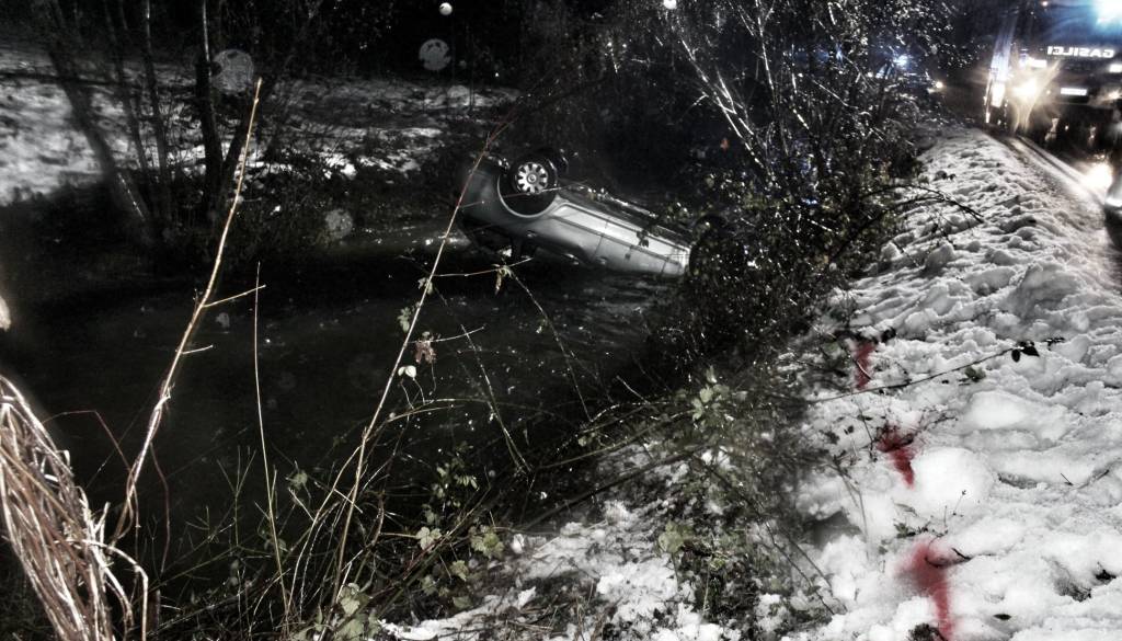 Gorenjski policisti so obravnavali prometno nesrečo, v kateri je voznica zaradi močnega vpliva alkohola - rezultat preizkusa alkoholiziranosti 0,91 miligrama alkohola na liter izdihanega zraka - in nepravilne strani vožnje s ceste zapeljala v približno pol metra globok potok in se z osebnim avtomobilom prevrnila na streho.