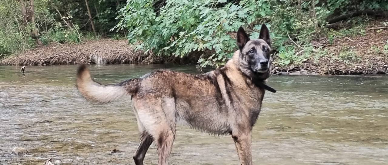 Pojasnjujejo, da gre za belgijskega ovčarja po imenu Lairy, upokojenega vojaškega psa s težko preteklostjo.