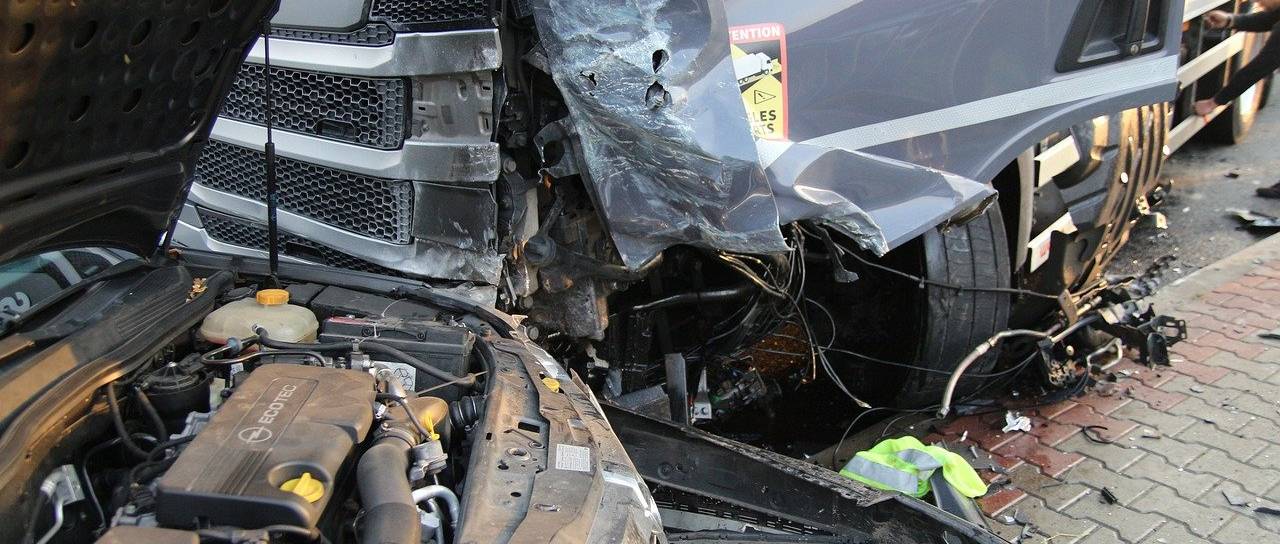 Ob 6.54 sta v bližini naselja Strnišče trčili osebno in tovorno vozilo.
