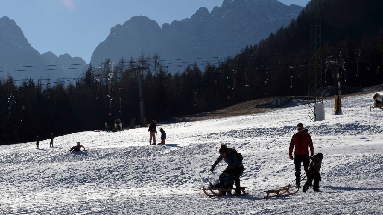 Gostje, ki bivajo v zasebnih namestitvenih kapacitetah, so se po tem, ko se je smučišče zaprlo ter se je smučarska proga pripravila za naslednji dan, sankali na smučarski progi.
