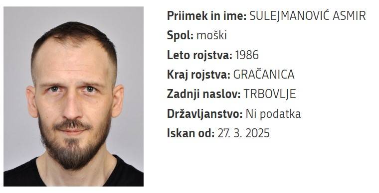 Ob tem so objavili tudi poziv vsem, ki imajo o njem kakršne koli informacije, ki bi policiji lahko pomagale pri njegovi izsleditvi. Prosijo jih, naj pokličejo na interventno številko policije 113 ali anonimni telefon 080 1200, so še sporočili z Generalne policijske uprave.