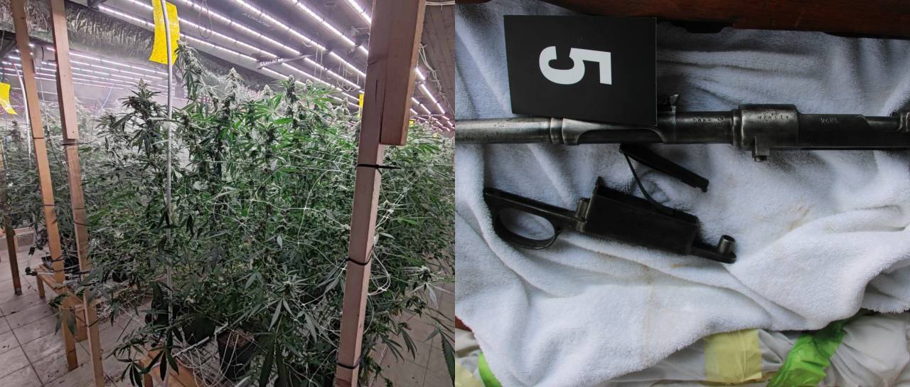 Zasegli so približno 500 gramov posušenih rastlinskih delcev, 198 stebel sadik konoplje ter dve lovski puški, za kateri osumljeni ni imel ustreznega dovoljenja.