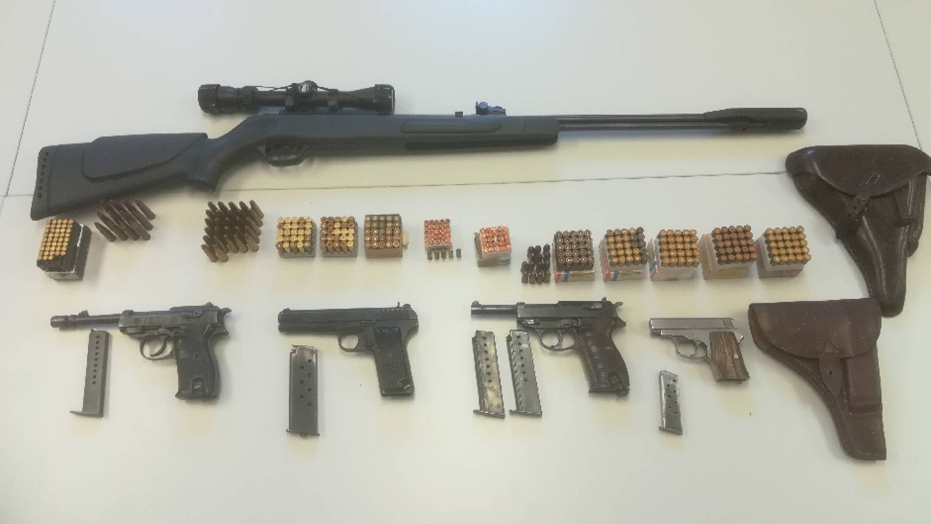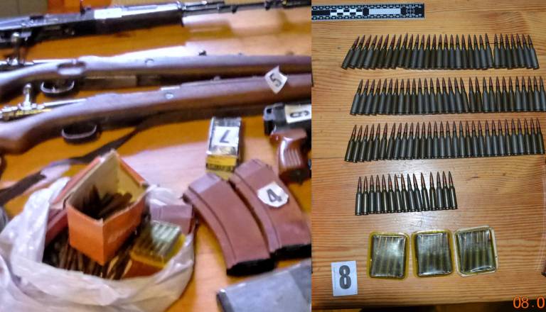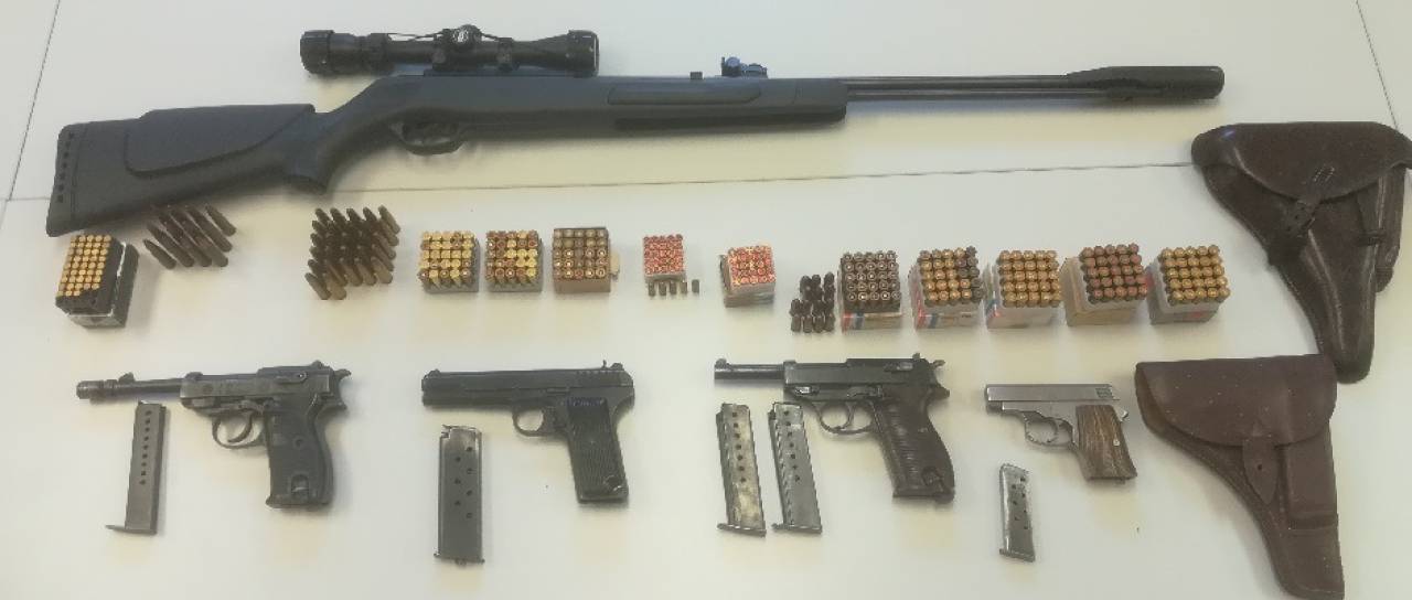 Med preiskavo so našli in mu zasegli štiri kose kratkocevnega orožja oziroma pištole in eno dolgocevno orožje oziroma puško znameščenim daljnogledom. Zasegli so mu tudi 351 nabojev različnih kalibrov.