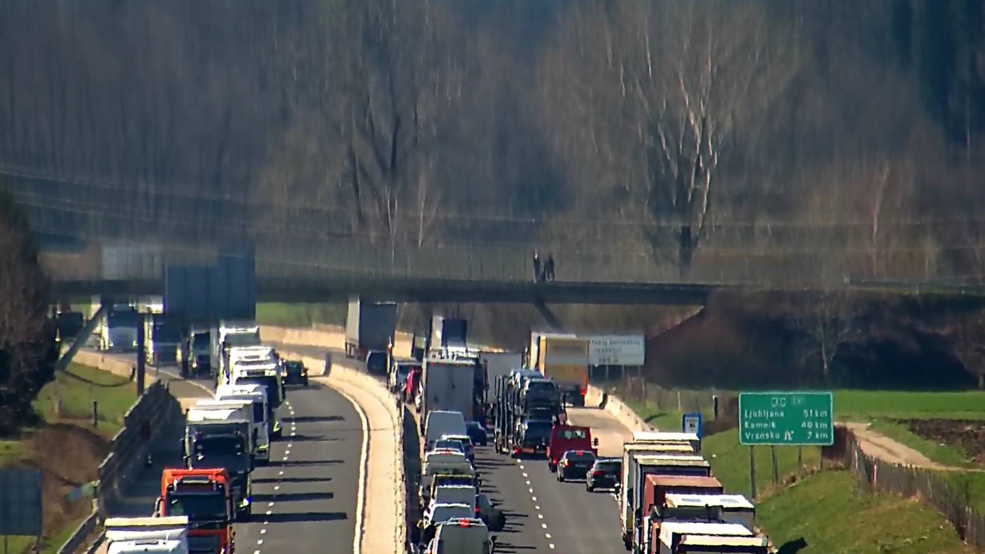 Štajerska avtocesta je zaradi prometne nesreče zaprta med Šentrupertom in Vranskim proti Ljubljani. Prišlo je do trka dveh tovornih vozil.
