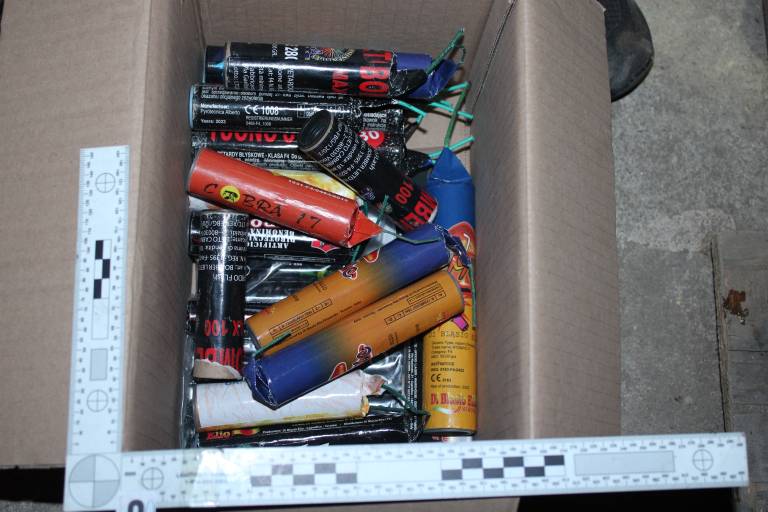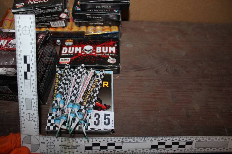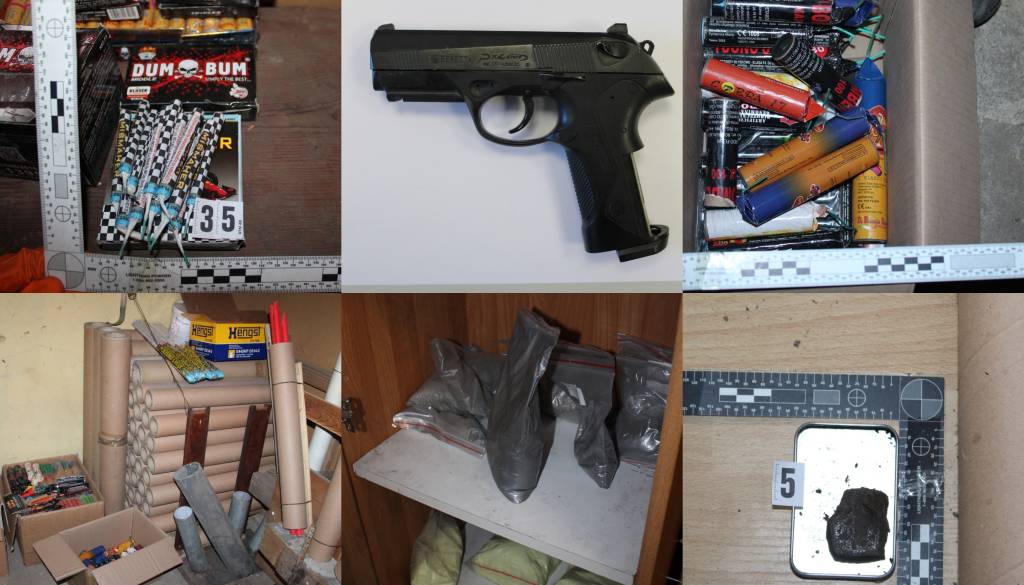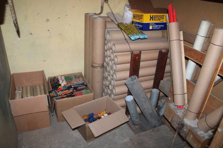 V prostoru, prirejenem za izdelovanje razstreliva so našli in zasegli še 1.850 kosov prepovedane pirotehnike, en kilogram smodnika, pet kilogramov različnih snovi za izdelovanje eksploziva, 30 večjih tulcev, napolnjenih z eksplozivom in vžigalno vrvico domače izdelave.