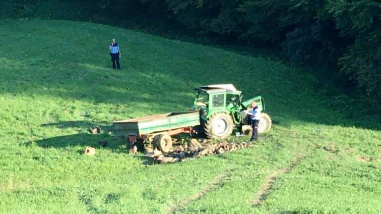 Na travniku se je prevrnil traktor