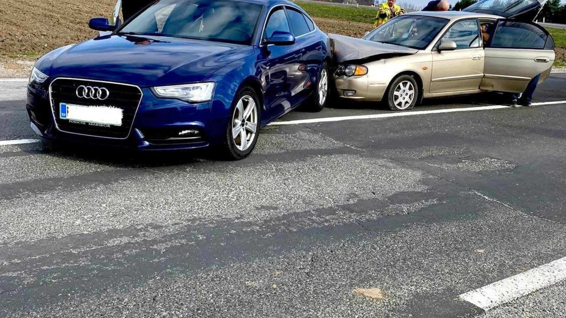 Ob 15.40 sta na cesti v Zgornji Hajdini, občina Hajdina, trčili osebni vozili, pri čemer se je ena oseba poškodovala.