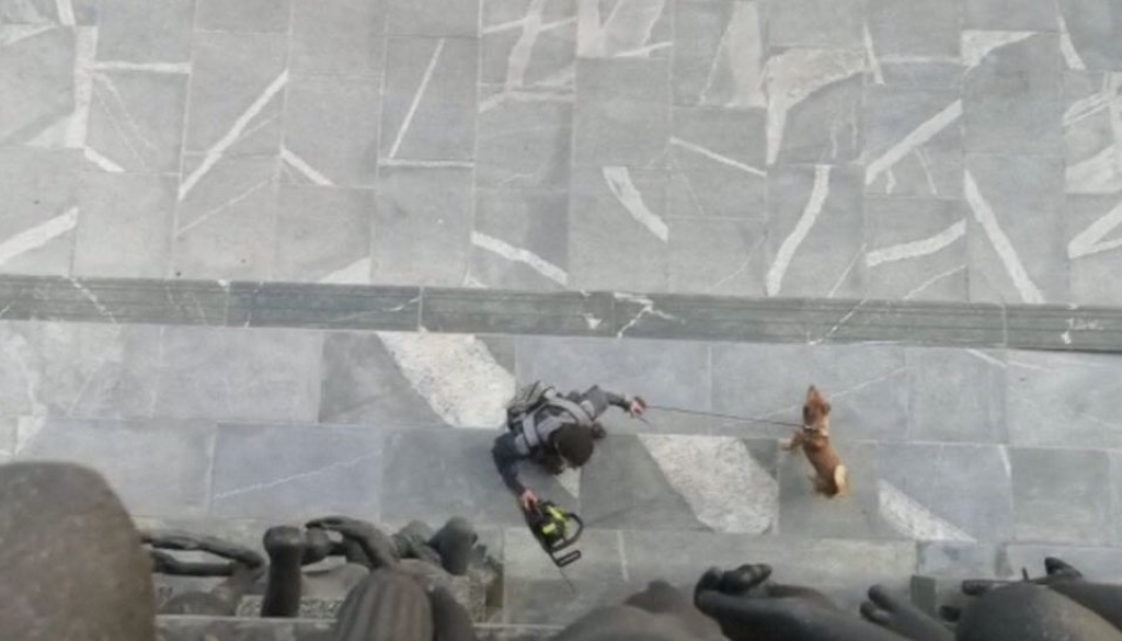 Napeto dogajanje v hramu demokracije, kjer poslanci pravkar odločajo o usodi Igorja Zorčiča na funkciji predsednika državnega zbora, je začinil neznan moški, ki je pred vrata parlamenta planil s psom v eni roki in z motorno žago v drugi. Moški, očitno sit epidemiološke situacije in vladnih ukrepov, je vpil:  »Dost mam tega zapiranja,« preden ga je obvladala policija.