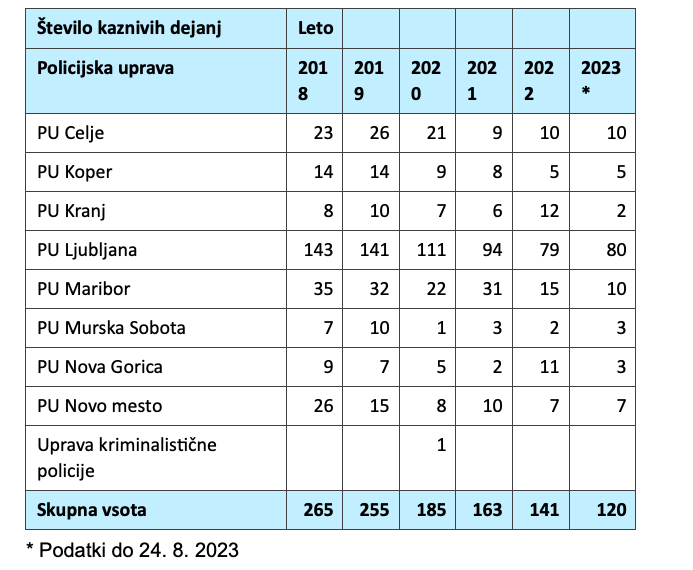 Število ropov je v zadnjih letih v upadu in je bilo v letu 2022 najmanjše v zadnjih trinajstih letih. V letu 2023 pa so policisti zabeležili manjše povečanje števila ropov, in sicer jih je bilo do 24. avgusta 2023 izvršenih 120.