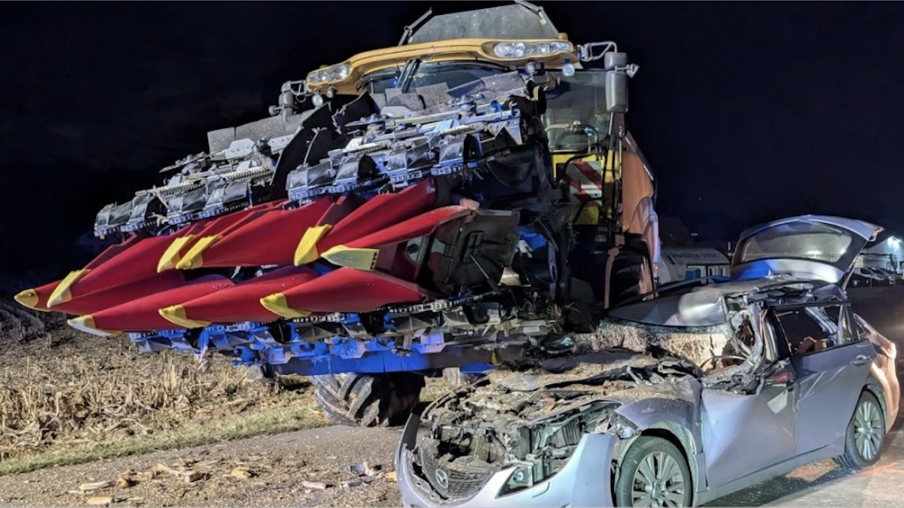 Voznik, ki naj bi bil pod vplivom alkohola, pri Koprivnici silovito trčil v kombajn.