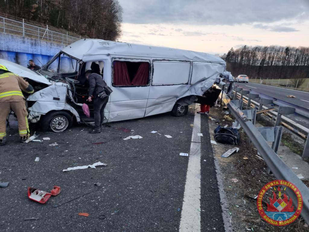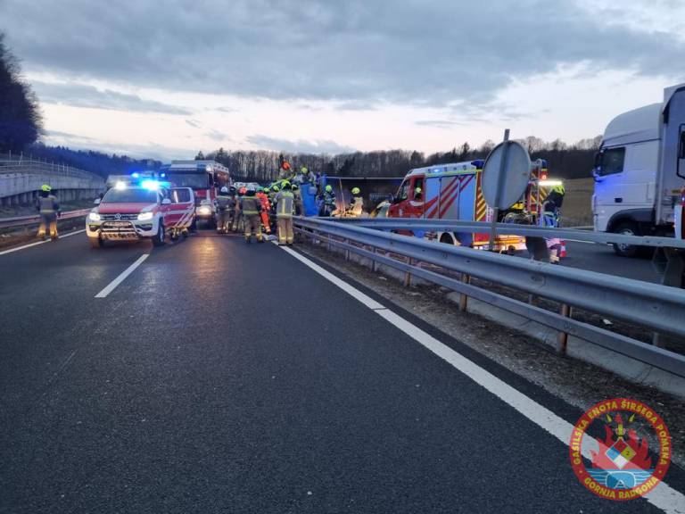 Slednje se je po trčenju prevrnilo preko vmesne odbojne ograje na nasprotno smerno vozišče. Voznik slednjega vozila je ostal v vozilu ukleščen in so ga iz vozila s tehničnim posegom rešili gasilci.