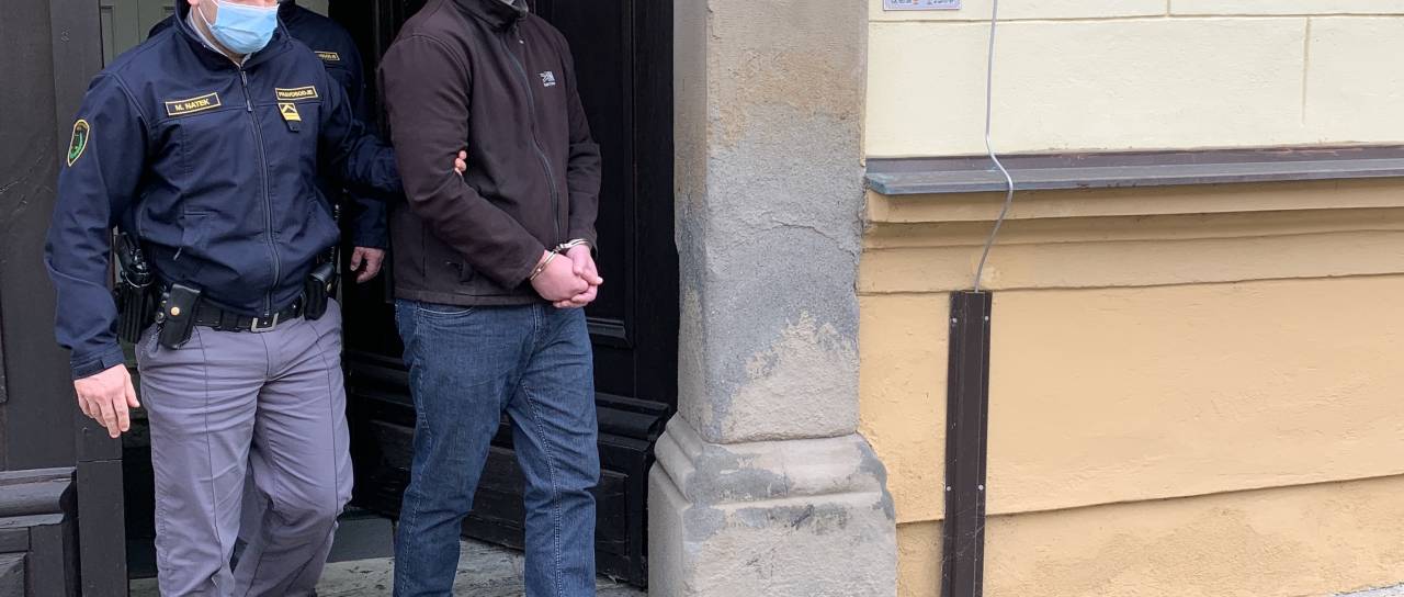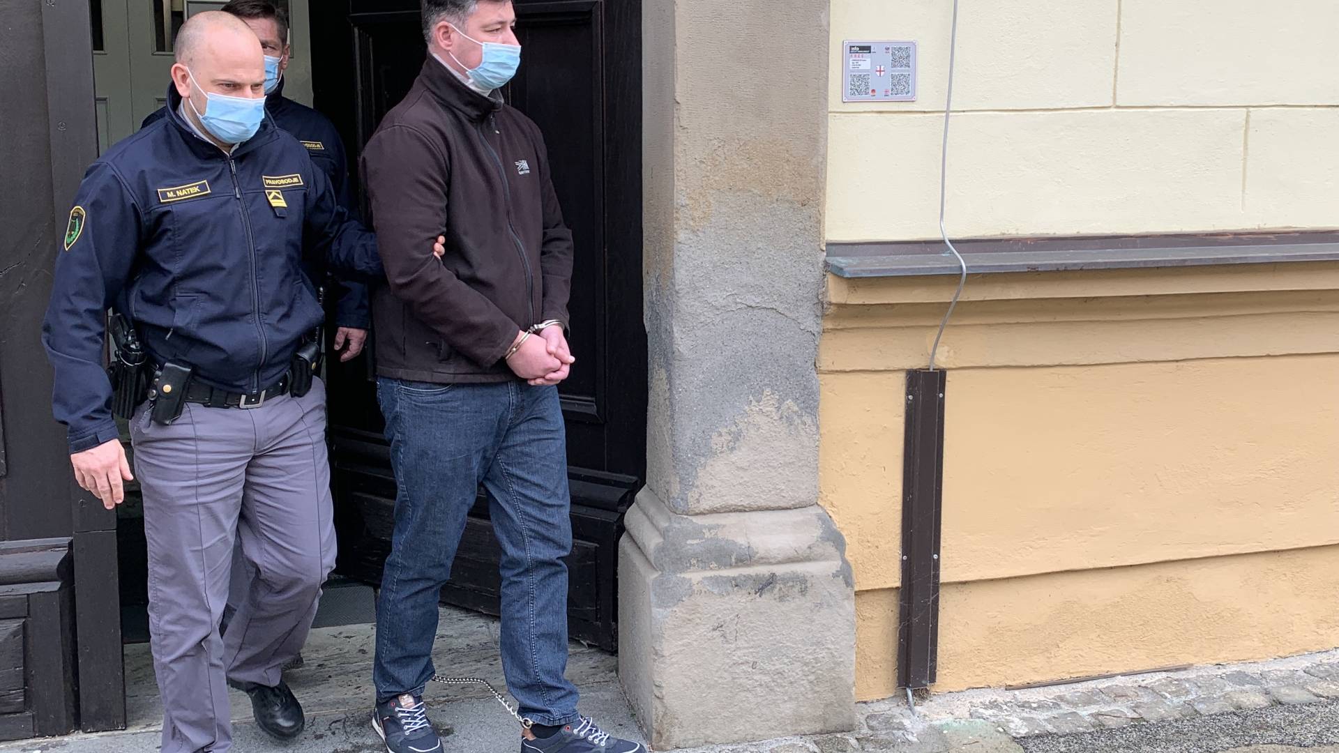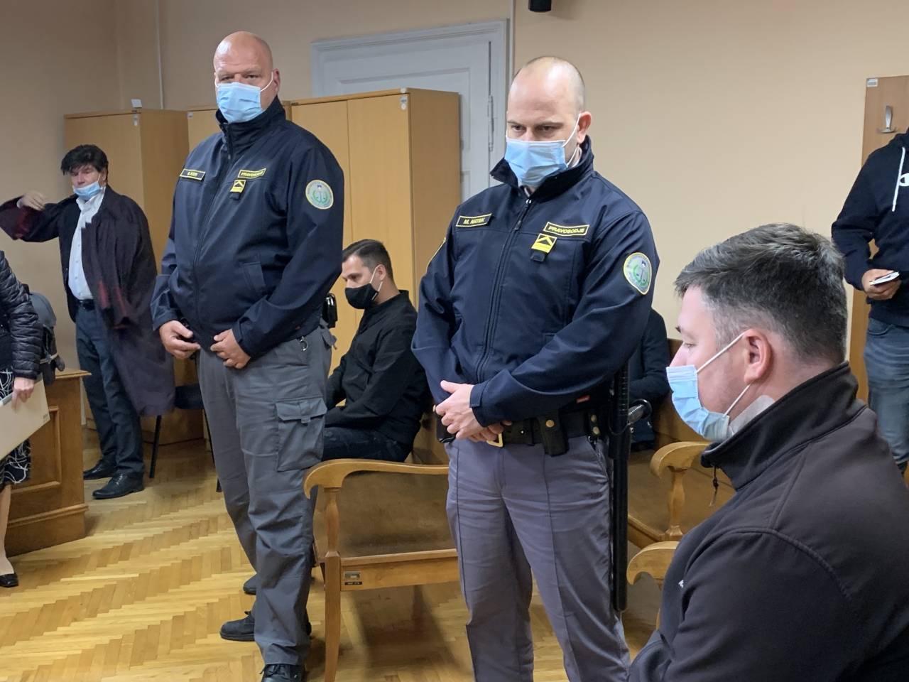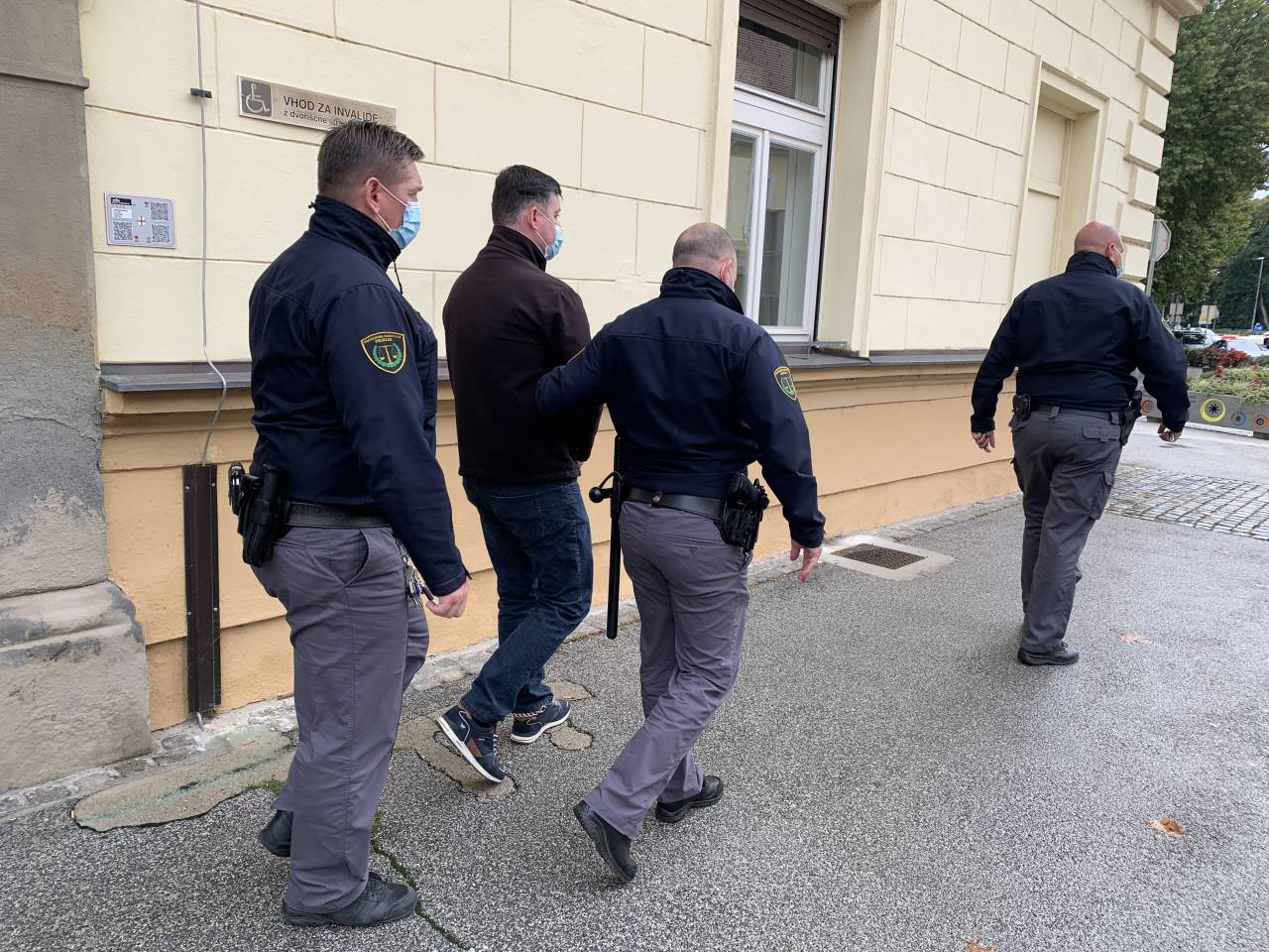 Pravosodni policisti so Silva Drevenška na Ptuj pripeljali s 30-minutno zamudo. Proti sodišču je stopal z vklenjenimi rokami in nogami.