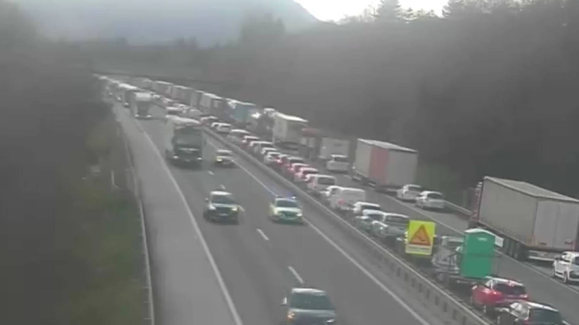 Nastal je zastoj, poroča Prometno informacijski center za državne ceste, ki voznike poziva, naj vzpostavijo reševalni pas.