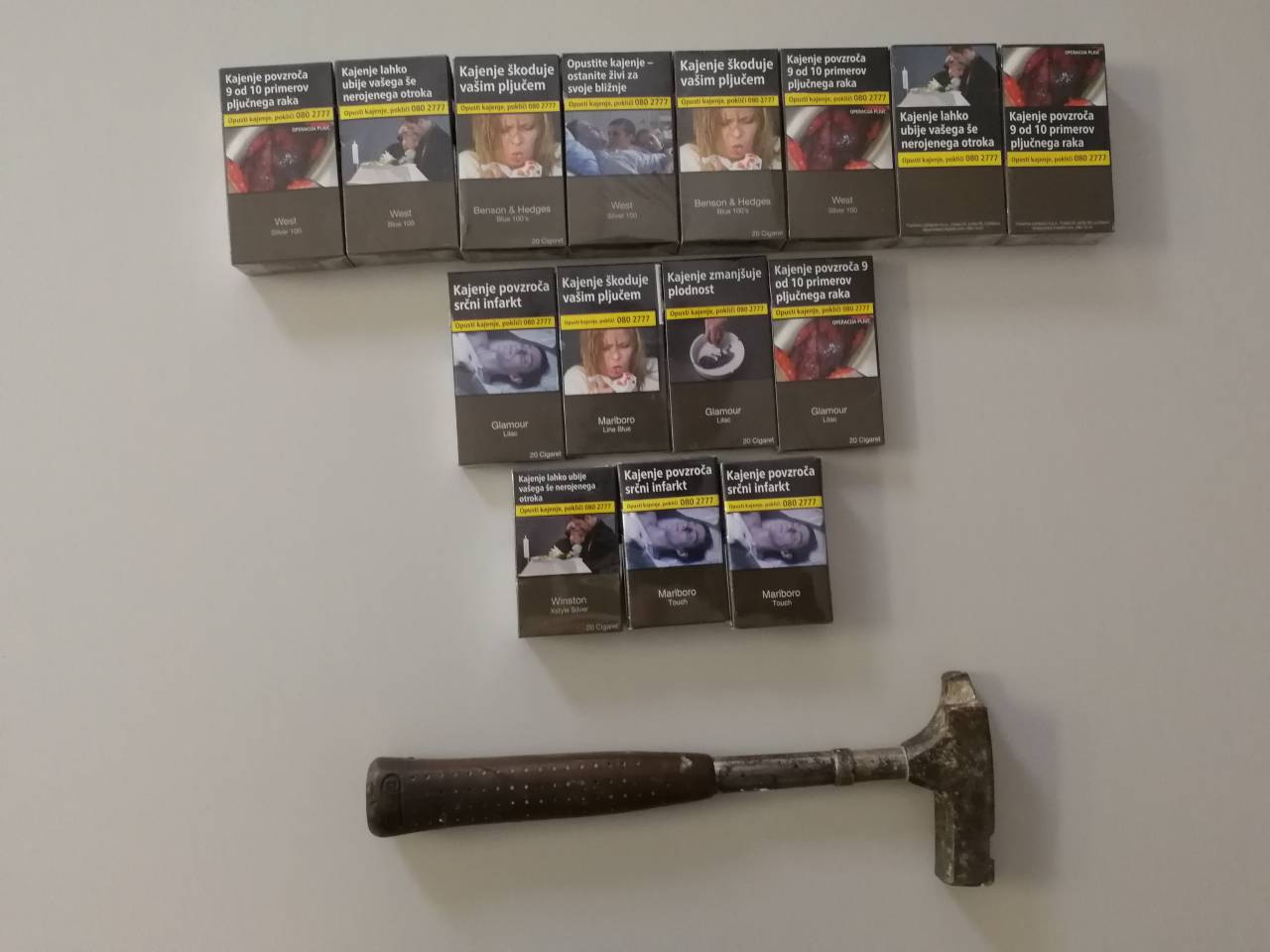 Z zbiranjem obvestil in dokazov so policisti osumljenca izsledili in mu odvzeli prostost. Pridobili so sodno odredbo in pri osumljencu opravili hišno preiskavo. Med njo so našli in mu zasegli več vrst in znamk cigaret, večino cigaret pa je osumljenec že uspel prodati na ulici. Prav tako so pri hišni preiskavi zasegli kladivo, s katerim je razbil steklo.