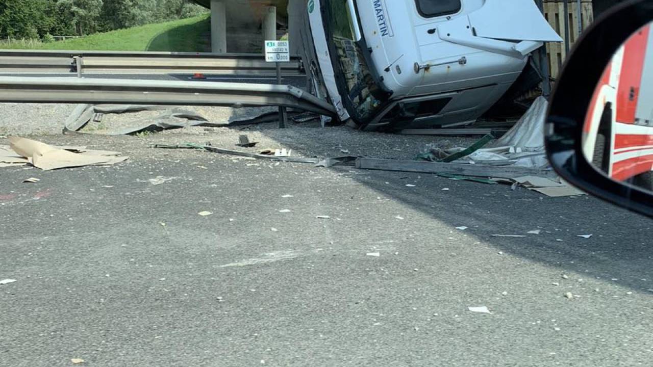 Na avtocesti Ljubljana - Koper je danes, 18. junija, ob 14.57, prišlo do hujše prometne nesreče. Tovornemu vozilu je odtrgalo levo kolo, ki je prebilo varnostno ograjo in obstalo na drugem voznem pasu.