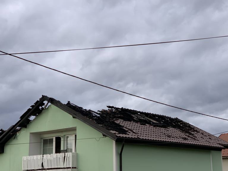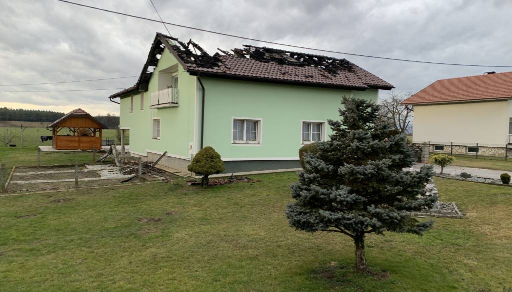 Ogenj popolnoma uničil dnevno sobo in kuhinjo, ostrešje in večino strešne kritine
