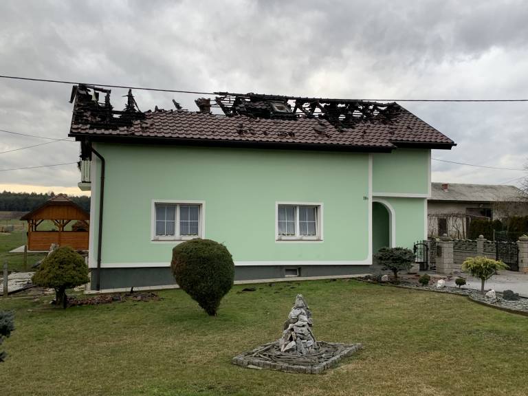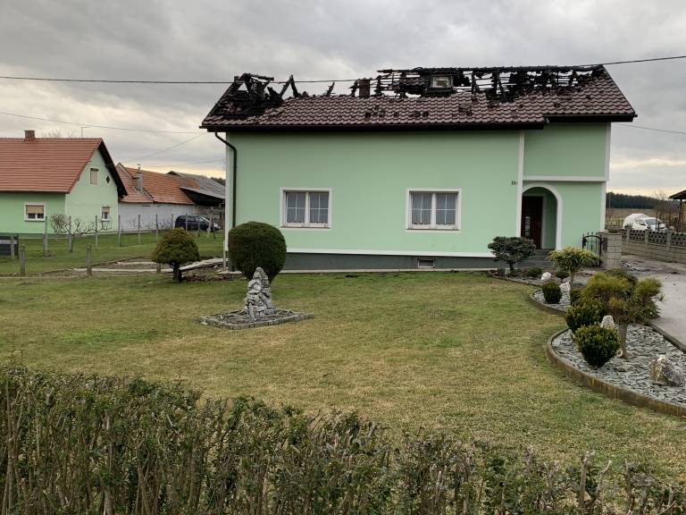 Ogenj je popolnoma uničil dnevno sobo in kuhinjo, ostrešje in večino strešne kritine, a na srečo poškodovanih ni bilo.
