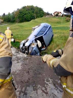Osebno vozilo je s cestišča zapeljalo v obcestni jarek in pristalo na boku. Eno poškodovano osebo so rešilci nujne medicinske pomoči prepeljali v Splošno bolnišnico dr. Jožeta Potrča Ptuj.