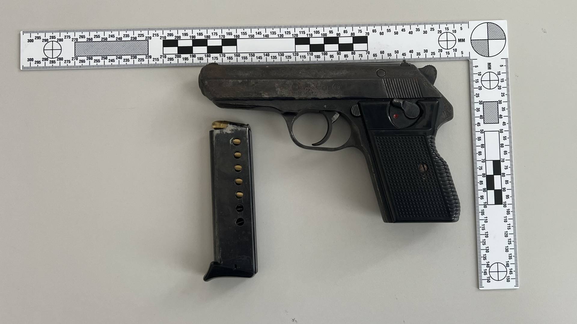 Pri dveh osumljencih so zasegli nekaj nabojev in pištolo.