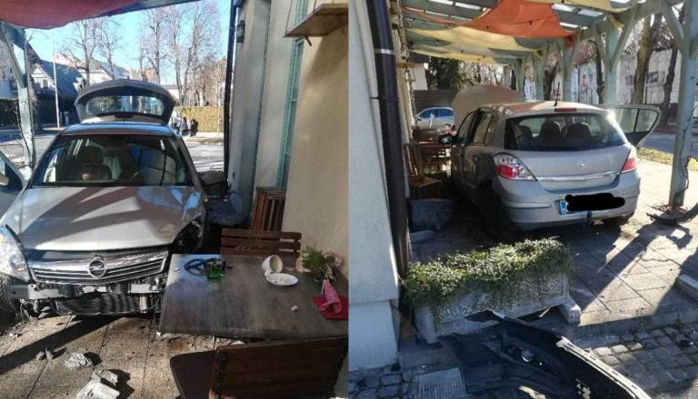 Voznik osebnega avtomobila zapeljal na teraso gostilne