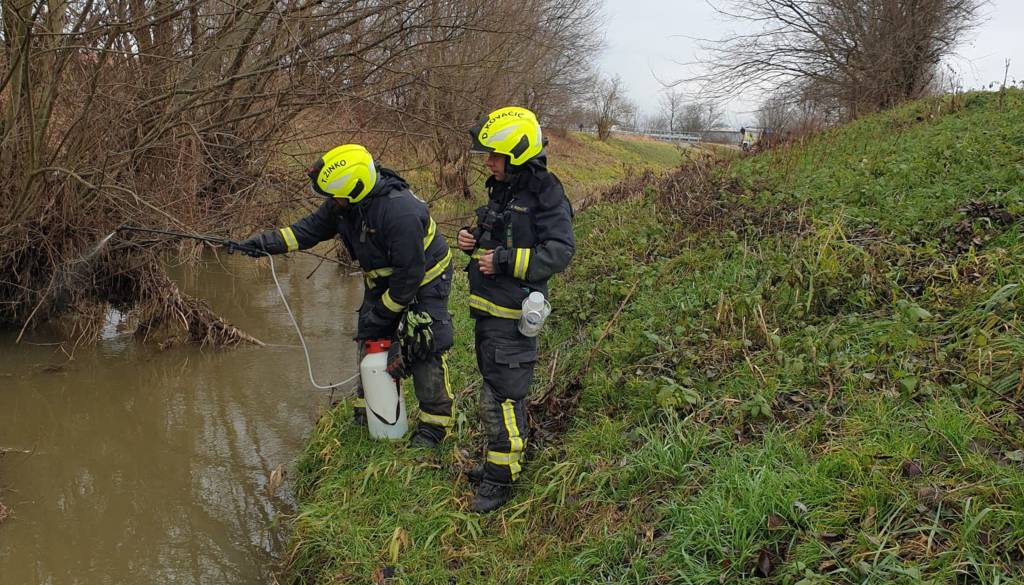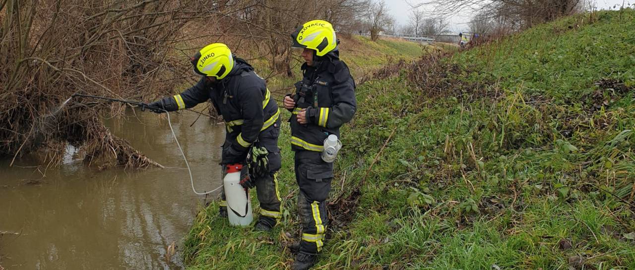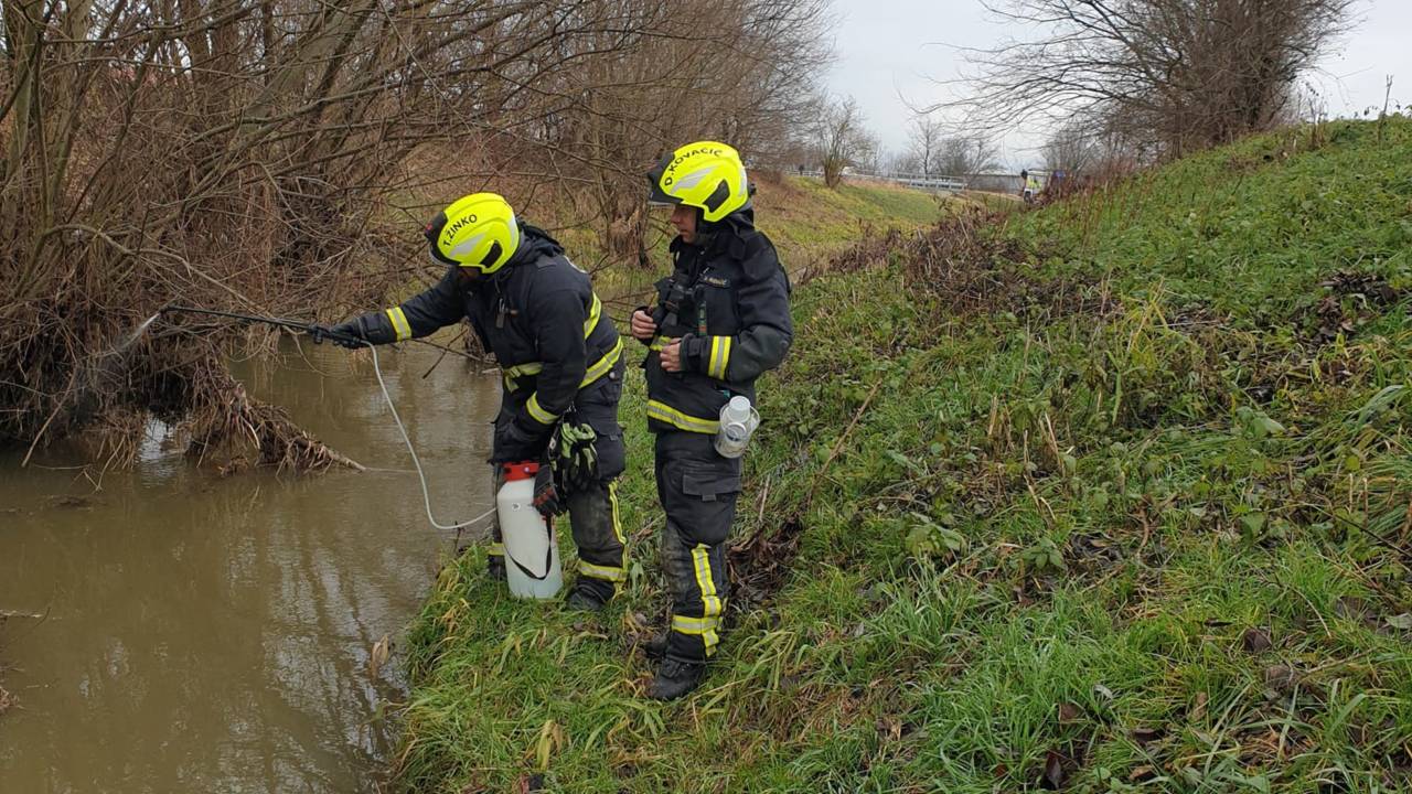 Gasilci so bili poklicani na pomoč zaradi onesnaževanja okolja. Na gladini potoka so namreč opazili madež, ki je imel vonj po naftnih derivatih.